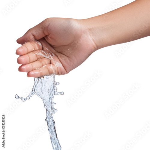 Hand pouring water, isolated on white background. transparent background