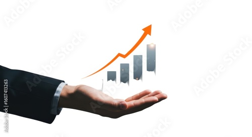 Hand presenting upward trend financial graph isolated on white background