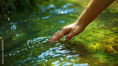 Hand Reaching into Crystal Clear Water