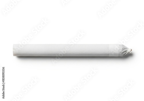 Hand rolled herbal product rests horizontally against a stark white background with subtle shadow.
