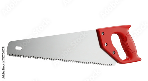 Hand saw tool red handle silver blade isolated transparent background