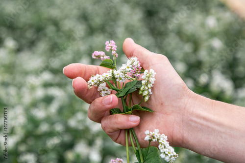 hand showing blooming buckwheat in the fall