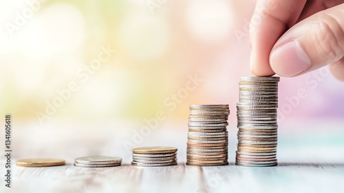 Hand stacking coins in ascending order.
