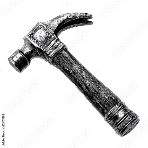 Hand tool, sturdy hammer with black handle and metallic head, essential for construction or DIY projects, great for home repairs. Isolated on white background or PNG