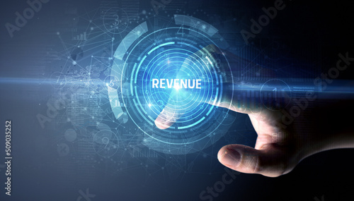 Hand touching business concept button