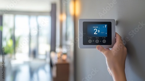 hand using touch thermostats, dimmers smart home devices