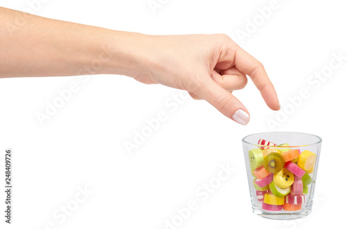Hand with colored round candy, sugar lollipop