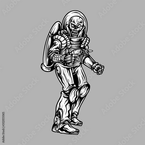 Handdrawing Vector Illustration Skeleton Alien Space Astronaut