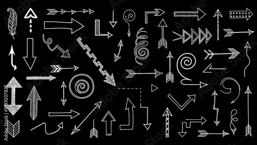 Hand-Drawn Arrow Collection on Black: A Versatile Vector Set for Infographics, Presentations, and Design Projects, Adding a Touch of Whimsy and Customization with a Black Background