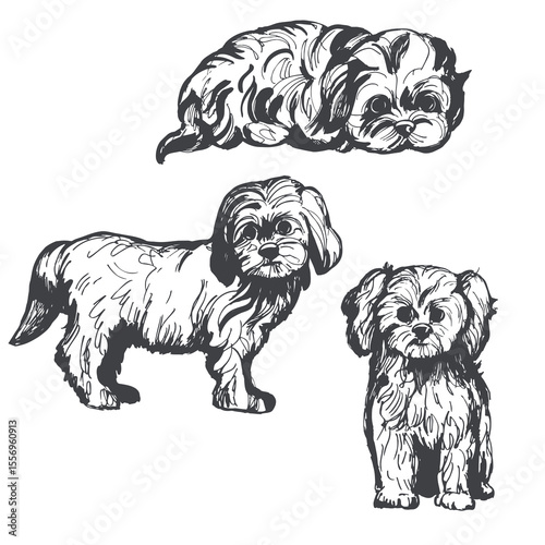 Hand-drawn dogs. Maltipoo. Vector sketch illustration.