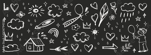 Hand-drawn Doodle Collection: Hearts, Clouds, Stars, and More