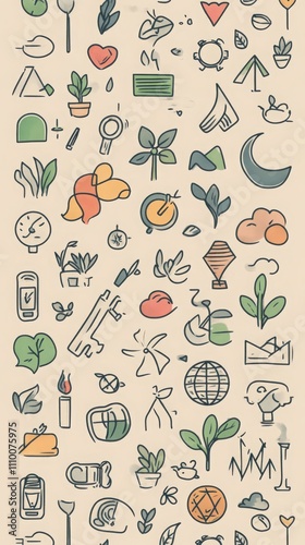 Hand-Drawn Eco-Friendly Icons for Various Uses