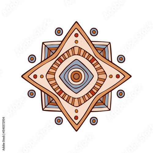 Hand-Drawn Geometric Star Ornament with Concentric Design on Black