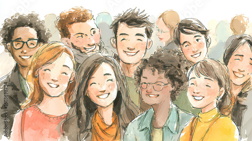 Hand-drawn illustration: A set of smiling people Stock Illustration