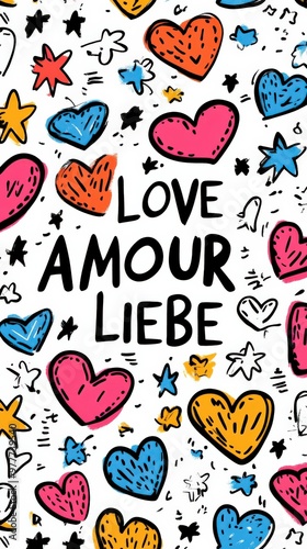 Hand-Drawn Love Doodles with Hearts and Cute Romantic Words