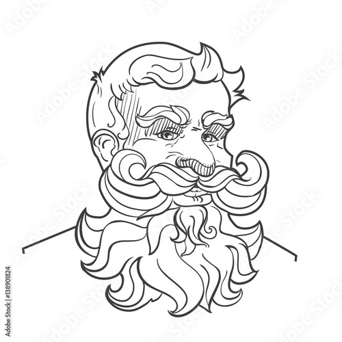 Hand-drawn man with mustache, beard and hairstyle.