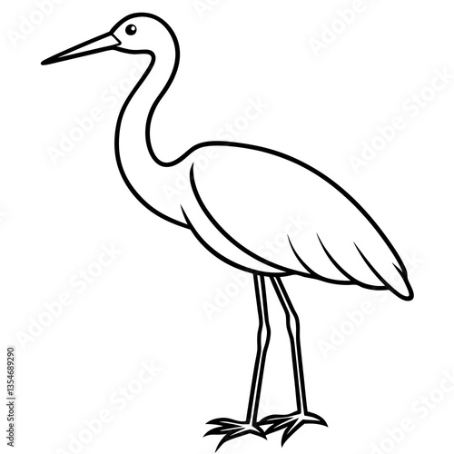 Hand-Drawn Stork Outline Art