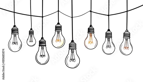 Hand-drawn string lights, some illuminated, on a white backdrop