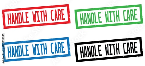 HANDLE WITH CARE text, on rectangle border stamp sign.