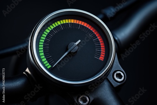 Handlebar tachometer dial showcasing engine speed with clear color indicators