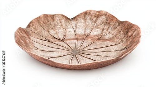 Handmade Hammered Copper Dish with Leaf Shape Design and Texture