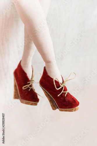 Handmade shoes for doll. Miniature shoes for the puppet. Shoes made of cork.