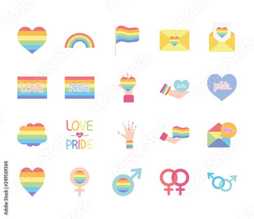 hands and pride icon set, flat style