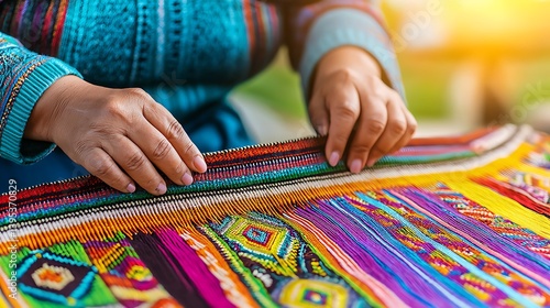Hands Creating Vibrant Textile Art with Traditional Techniques
