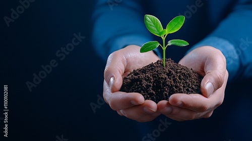 Hands holding a green plant symbolize sustainability and growth.