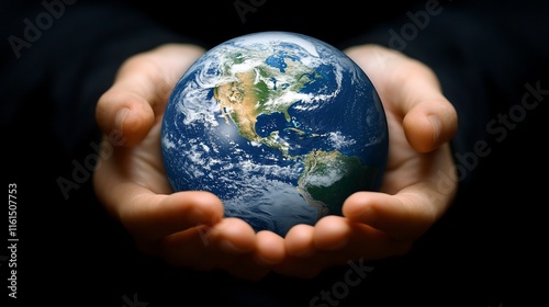 Hands holding a small Earth globe.