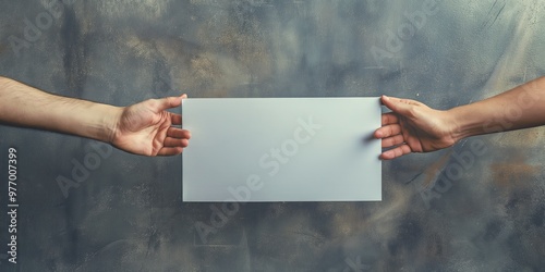 Hands Holding Blank Paper Sheet Against Textured Artistic Background