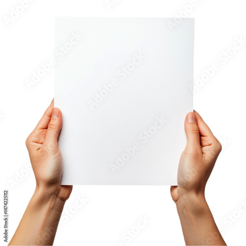 Hands holding blank white paper a simple background