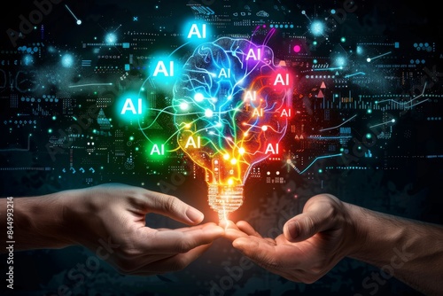 Hands Holding Glowing AI Brain, Digital Art of Artificial Intelligence, Advanced Neural Networks