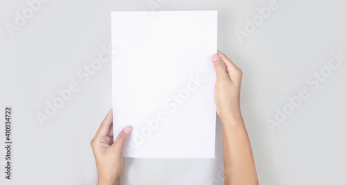 Hands holding paper blank for letter paper