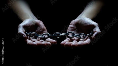 Hands in handcuffs against a dark background, symbolizing confinement