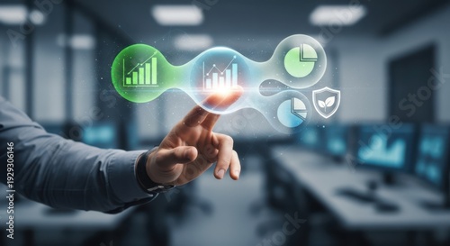 Hands navigating a secure smart device application to track corporate carbon footprint reduction and ESG strategy compliance