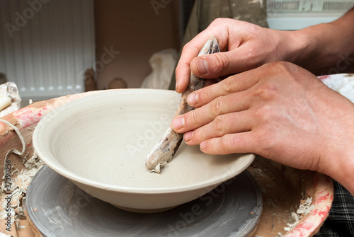 hands of a potter, creating an earthen jar on the circle