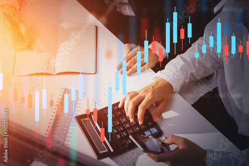 Hands of business people in office, forex graph