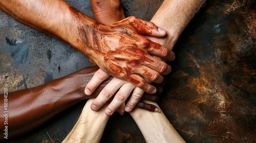Hands of Different Races Joined Together in Unity, Solidarity, and Support