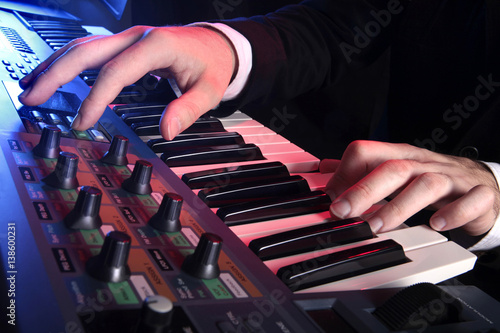 Hands pianist playing on the keyboard, a beautiful studio lighting