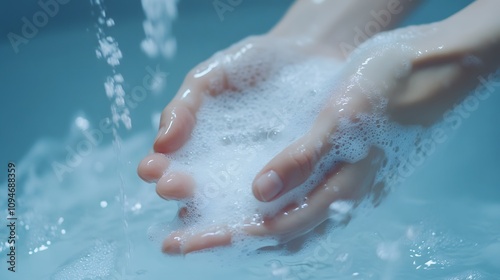 Hands washing under running water under a faucet