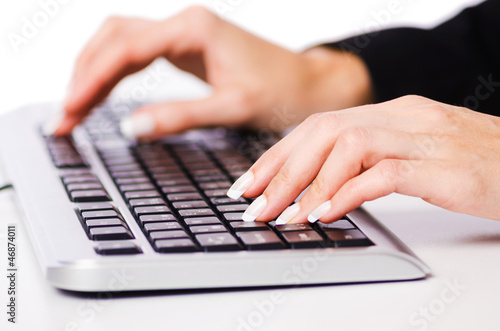 Hands working on the keyboard
