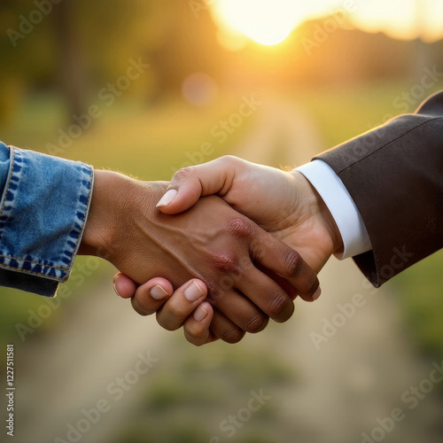 Handshake of Partnership: Unity, Trust, and Collaboration in Golden Hour Light