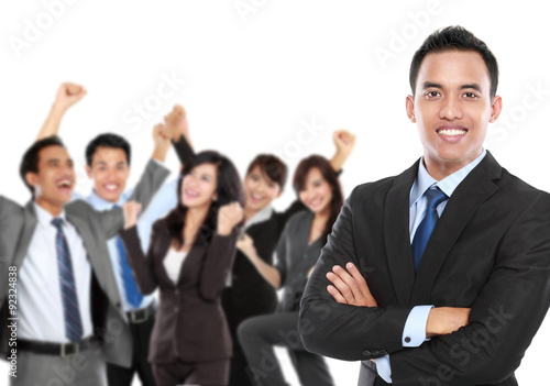 handsome business man in front of his team member