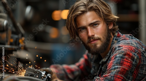 Handsome Craftsman: A Portrait of a Skilled Man Working in a Workshop