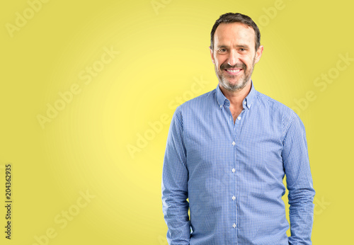 Handsome middle age man confident and happy with a big natural smile looking at camera