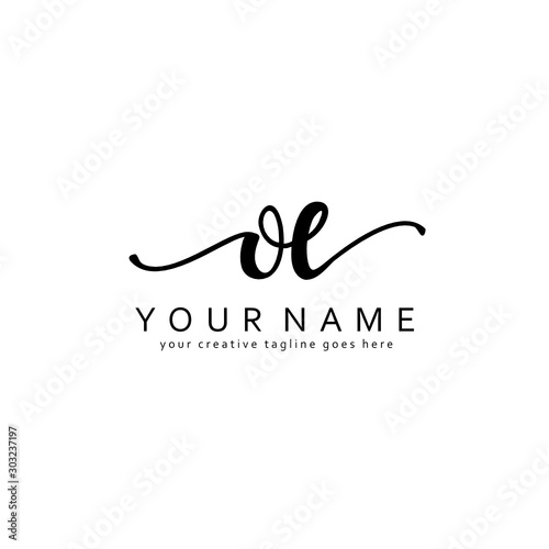 Handwriting O E OE initial logo template vector