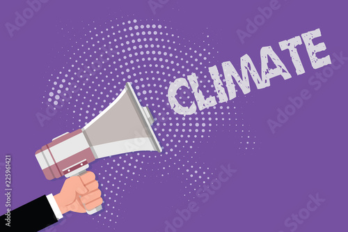 Handwriting text Climate. Concept meaning Weather conditions in area over long periods of time Temperature.