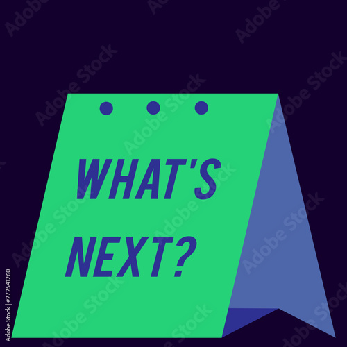Handwriting text What S Next Question. Conceptual photo Get information Ask Query Investigate Probes Explore Modern fresh and simple design of calendar using hard folded paper material