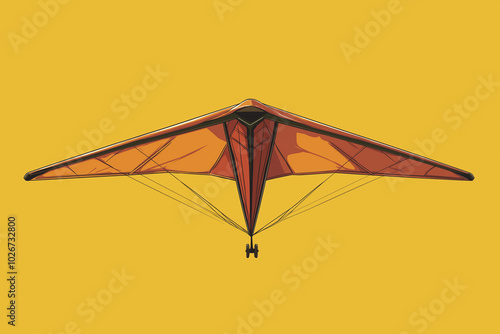 Hang Glider Icon in 2D: Departing Bronze on a Yellow Sky - Freedom Above the Clouds